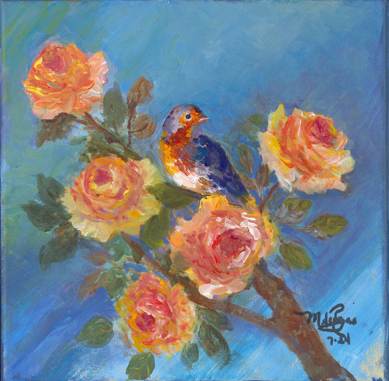Bluebird on Apricot Roses - Maria de Rojas